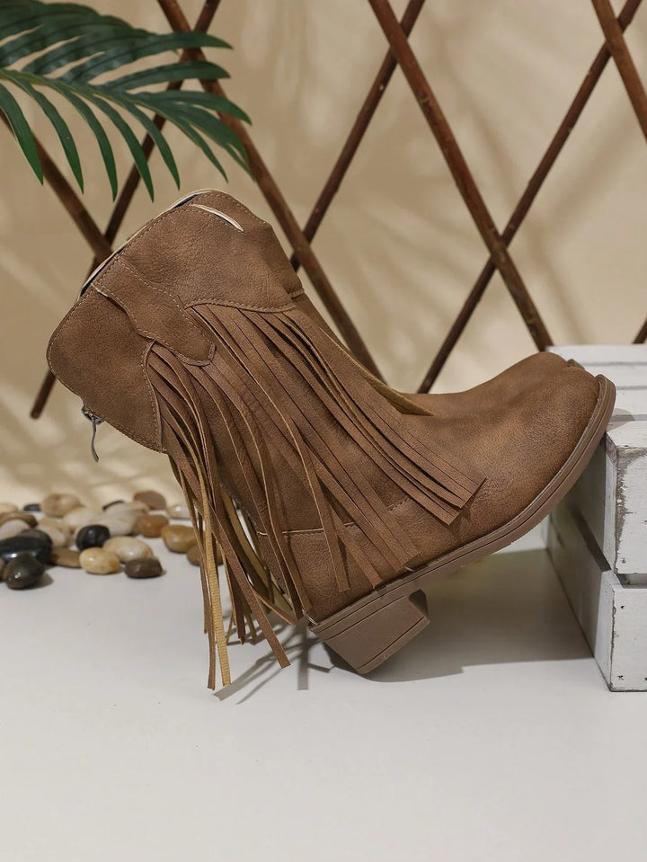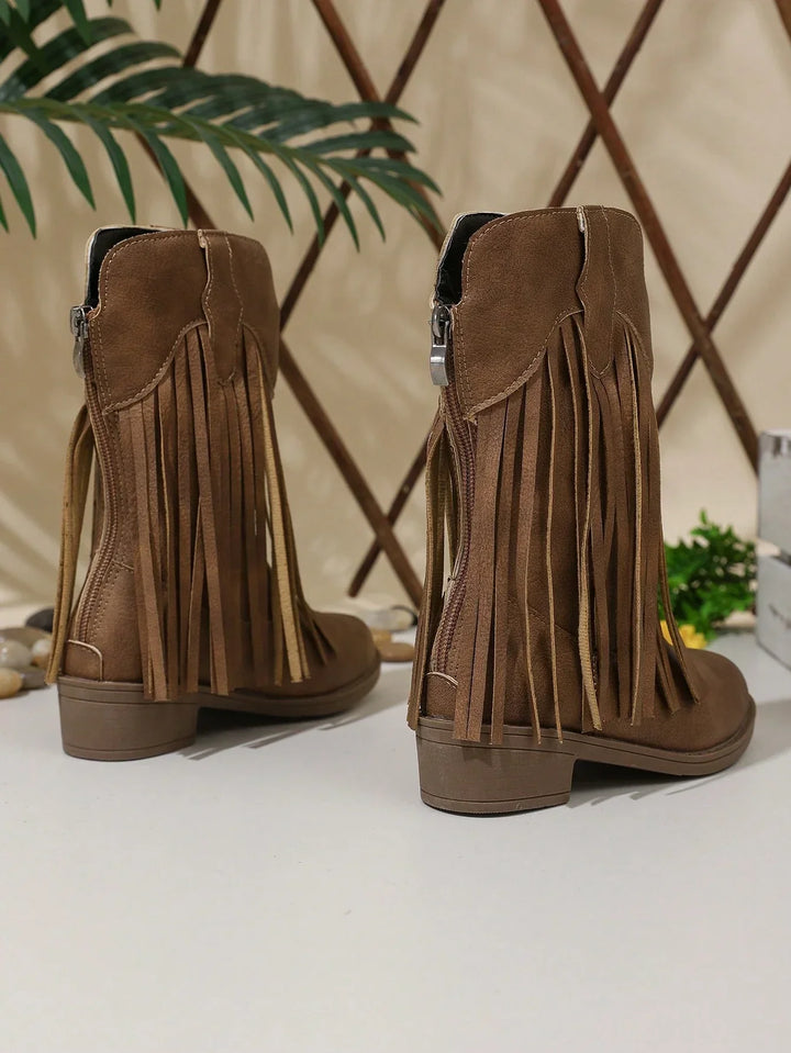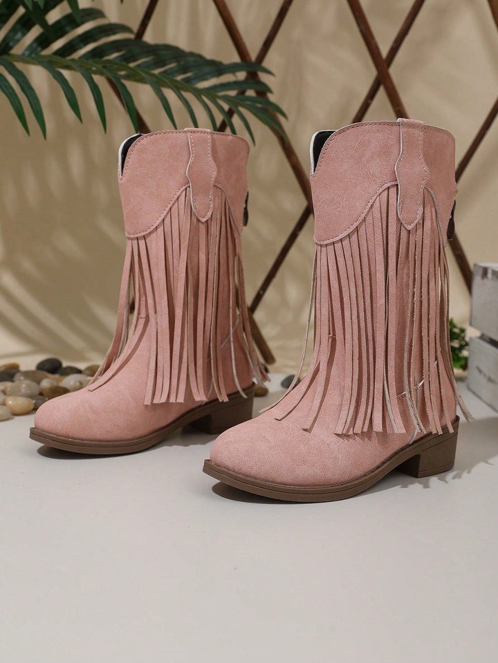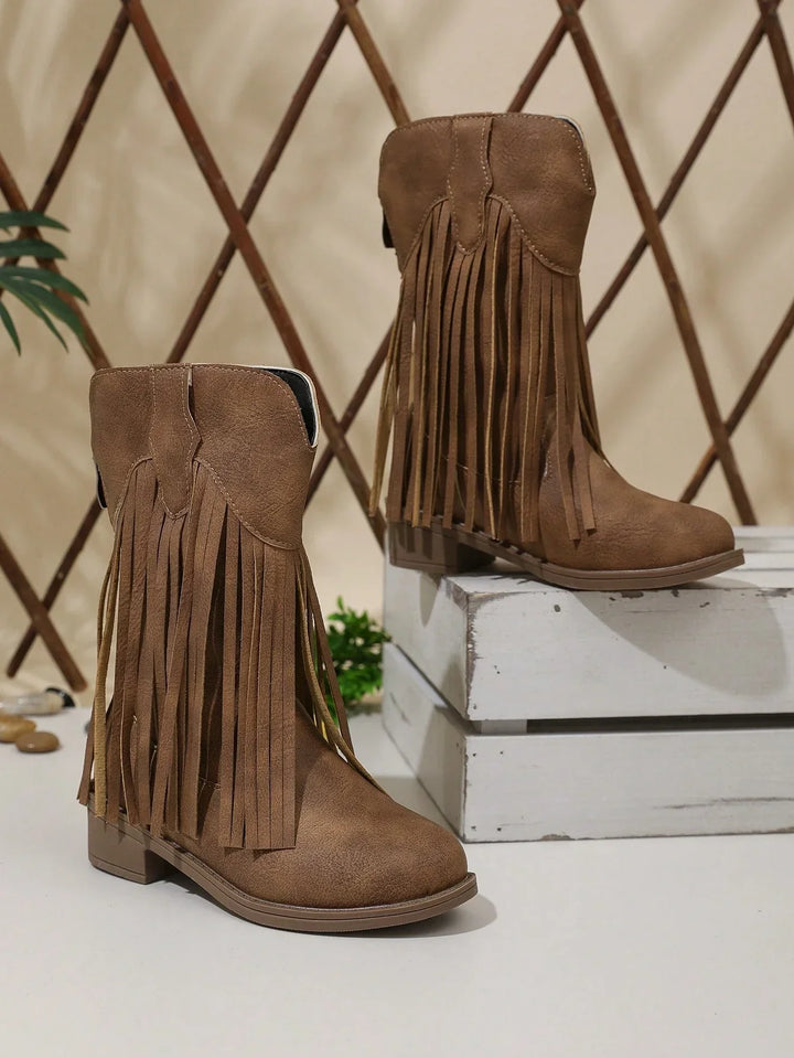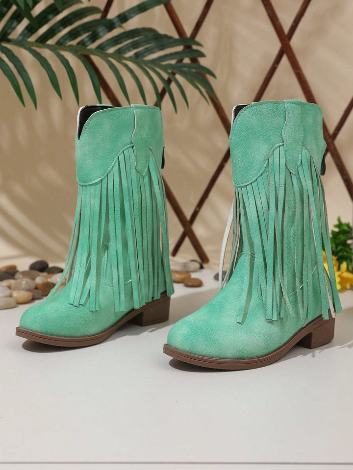 "2025 Autumn/Winter American Pioneer Children's Boots: Vegetable-Tanned Aged Leather + Anti-Drop Umbrella Rope Tassels; Side Zipper Ankle Guard Midcalf; 4-12 Years Old Farm Gift Box!"
